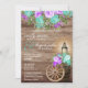 Invitation Beau bois Patiné avec fleurs Turquoises et violett