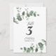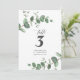 Magnifique numéro de table de mariage élégant et délicat avec feuillage d'eucalyptus à petit budget. Moderne élégant tendance vert sauge, noir, bleu marine et blanc collection rustique contemporaine stylée. Idéal pour les mariages de printemps, été, automne ou hiver.