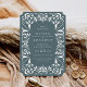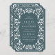 Élégantes invitations de mariage vintage dans riche vert de la forêt détails ornés qui évoque l'aspect du papier coupé dans un style picado papel. Sélectionnez la forme Billet pour compléter la forme unique des détails de style déco.