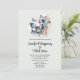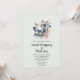 Invitation de mariage avec un trio de papillons voltigeant parmi de jolies fleurs. Palette de couleurs bleue rose et verte.
