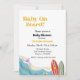 Il y a un bébé à bord. Une invitation au baby shower à la plage de type boho donnera le ton à un baby shower gai et décontracté. L'invitation comporte un thème de surf amusant qui est idéal pour une fête en bord de mer. La plupart des lettres sont modifiables ; pour ce faire, cliquez sur l'option "Customiser plus".
