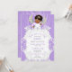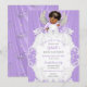 Petite fille ange adorable en lavande avec des ailes argentées. Cadre argenté défilant avec des accents de diamants lavande sur un fond satiné.