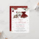L'invitation pour le Baby shower de Noël Baby it's Cold Outside est un thème de fête délicieux et festif, qui combine la magie de Noël avec la joie d'accueillir une petite fille. Au coeur du design se trouve une robe bourguignonne pleine de charme, qui dégage une atmosphère chaleureuse de vacances. La robe est magnifiquement ornée de fleurs d'hiver, ajoutant une touche d'élégance saisonnière et de charme hivernal de la nature. D'autres éléments inspirés de Noël, tels que des cadeaux emballés, des flocons de neige et des ornements, entourent la scène, créant un environnement gai et festif. Éléments correspondants disponibles.