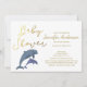 Cette invitation Baby shower présente un arrière - plan blanc avec des éléments pour bébés dauphins. Le dos est conçu avec une couleur bleue coordonnée. Cet article est affiché sur papier standard, mais peut être customisé à n'importe quel papier de style que vous souhaitez. Il y a de nombreuses options pour la personnalisation ! Entrez vos propres informations ou customisez-les pour supprimer tout élément que vous désirez. Une invitation à tous ceux qui aiment les dauphins, l'océan, la plage ou le design nautique.