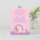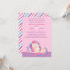Une invitation au baby shower mignonne et douce avec l'illustration d'un bébé licorne dormant sur des coussins confortables. Une palette de couleurs rose, violet et bleu qui est parfaite pour la célébration de l'arrivée prochaine d'une petite fille. Au verso se trouve un motif à bandes inclinées avec la même palette de couleurs. Personnalisez facilement avec les détails de votre fête.