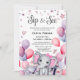 Invitation Bébé Eléphant Ballons roses SIP ET VOIR