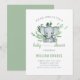 Invitation Bébé éléphant mignon garçon verdure vert blanc