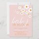 Prévoyez-vous le baby shower d'une fille ? Cette mignonne invitation est décorée de marguerites blanches dessinées à la main sur un arrière - plan rose doux. Il dit Baby in Bloom dans la typographie stylisée. Facile à personnaliser. Dessin original © Michele Davies.