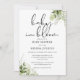 Une élégante invitation à la baby shower élégante avec une typographie élégante et une jolie verdure botanique. Conçu par Thisisnotme©