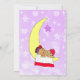 Un petit bébé à la peau foncée et aux cheveux noirs qui pourrait représenter un bébé hispanique ou afro-américain. Le devant représente un bébé dormant sur un nuage avec un fond violet. Le dos a le bébé dormant sur la lune.