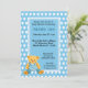 Invitations de douche pour bébé pour les garçons avec le coeur bleu arrière - plan et un ours en peluche doux dans le coin. Customisez avec les détails de votre fête.