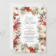 Bébé, il fait froid dehors ! Invitation au Baby shower floral festif. Le design présente un arrière - plan blanc classique décoré de magnifiques fleurs traditionnelles d'hiver rouge et ivoire et d'autres feuillages de noël encadrant un élégant modèle baby shower facile à customiser.