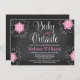 Une invitation chic au baby shower à thème hivernal. Doté d'une police de script avec l'expression "Baby It's Cold Outside", avec des flocons de neige roses et blancs sur un motif arrière - plan de tableau noir. Moderne et mignon pour un baby shower fille.