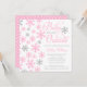 Une adorable invitation de baby shower sur le thème de l'hiver. Caractérisée par une police script avec la phrase "Baby It's Cold Outside", avec des flocons de neige roses et gris. Moderne et mignon pour une baby shower fille.