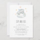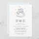 Ce petit bébé éléphant endormi sip et voir l'invitation est parfait pour une simple rencontre avec la fête du bébé. Le design moderne comprend un animal de zoo safari couleur d'eau mignon dormant sur un nuage doux avec des étoiles jaunes scintillantes.
