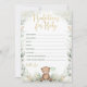 Cet élégant jeu de baby shower comprend un joli ours en peluche tenant un ballon en forme de coeur encadré d'une belle couronne de verdure aquarelle.