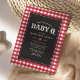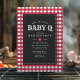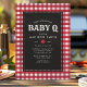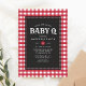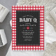 Baby Q Barbeque Rustic Country Baby shower Invitation. Personnalisez facilement ce design personnalisé avec vos propres détails de baby shower. Ce design comprend un motif à plaid en vichy. Idéal pour un jardin d'été baby shower barbecue.