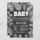 Bébé son invitation de Baby shower d'hiver à froid en dehors de l'hiver. Flocon de neige blanc. Invitation Baby shower garçon ou fille. Invitation du Baby shower des Fêtes d'hiver. Arrière - plan de tableau de bord. Noir et Blanc.