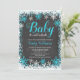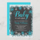 Invitations orientées de baby shower d'hiver turquoise. Caractéristiques de conception ce élégantes une police bleue et blanche turquoise de frontière et de manuscrit de flocon de neige sur un arrière - plan de tableau.