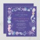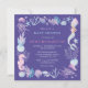 Invitation adorable à l'aquarelle sirène sous l'océan violet bébé shower. La conception girly présente une sirène, des créatures sous-marines, des coquillages et un récif corallien dans le style aquarelle.