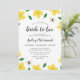 Invitation à la douche nuptiale sur le thème des abeilles avec des feuilles verts, des beurres jaunes et des petites abeilles avec le jeu de mots "douche la mariée à abeilles." Le dos est assorti aux pois verts et blancs.
