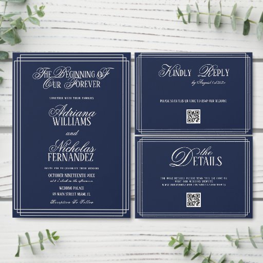 Invitation Beginning Of Our Forever Timeless Navy Wedding