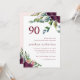 Belle et chic aquarelle botanique fleurie et verdoyante 90ème anniversaire invitation fête, dispose d'un joli dossier rose pastel avec des fleurs pourpres bordeaux et verdure, et un front blanc avec élégante 90 typographie et fleurs avec feuillage.