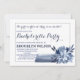 Célébrez en style avec nos Belles invitations Bachelorette Bouquet Bleu! Dotés d'élégants motifs floraux et d'une palette bleue fraîche, ils sont parfaits pour rassembler votre tribu de mariées pour une nuit chic et inoubliable. Laissez le plaisir commencer par une touche de charme floral !
