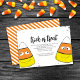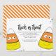 Préparez-vous pour un invitation de fête d'Halloween spooktaculaire avec un design de maïs-bonbons mignon et drôle avec des rayures orange amusantes! Cette invitation à thème "Trucs-ou-Traiter" présente un script de calligraphie élégant et une typographie branchée, ce qui en fait un événement unique et créatif d'octobre. Conçu pour des fêtes d'automne capricieuses, il combine un design minimaliste simple et une charmante illustration de dessin animé. Idéal pour tous les âges, cet invitation est un incontournable de votre fête d'Halloween !