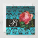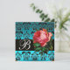 INVITATION BELLE ROSE PINK MONOGRAMME DAMASSÉ BLEU NOIR