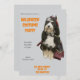 Invitation vos amis et votre famille à votre fête d'Halloween avec cette carte fantaisiste et minimaliste avec Birdie le Bernedoodle habillé de son costume de pirate rouge, noir et blanc. Certains mots sont de type orange effrayant et d'autres de gris foncé. Envoyez à vos amis, votre famille et d'autres chiens pour venir faire la fête avec vous pour Halloween. Vous pouvez modifier l'heure, la date, le numéro RSVP, l'adresse et le nom.