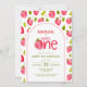 Fraise Berry First Birthday Invitation pour bébé fille en train de devenir doux ONE. fraises d'aquarelle, accents floraux feuille et blancs. Berry invitation de 1er anniversaire.