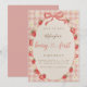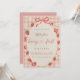 Celebrate your little sweetheart with this adorable Berry First Birthday invitation featuring soft pink gingham, watercolor strawberries, delicate daisies, and a sweet bow frame design.