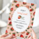 Cottagecore vintage invitation d'anniversaire de fraise pour une douce baie de 1er anniversaire célébrations.