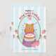 Avec des rayures roses, des fraises et un ours en peluche, cette invitation est pleine de charme et parfaite pour le grand jour de votre petit. (OEuvre générée par l'IA)