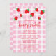 Invitation d'anniversaire aux fraises sucrées Berry avec des fruits rouges et un arrière - plan de style damier.