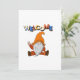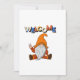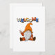 Gnome assis avec le signe de paix et la carte de message de bienvenue colorée pour toute occasion et quand vous voulez envoyer quelque chose d'unique.
