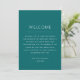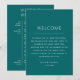 Accueillez vos invités avec cette superbe carte d'itinéraire de week-end de mariage de couleur sarcelle foncé présentant un accent de turquoise foncé complémentaire pour un look riche et élégant. Parfaite pour les mariages en toute saison, cette carte de chronologie minimaliste décrit clairement les événements de votre week-end spécial. Idéale pour les couples qui aiment les palettes de couleurs audacieuses et sophistiquées et qui souhaitent ajouter une touche stylée à leur célébration moderne, côtière ou inspirée de la nature. Disponible sous forme de carte imprimée ou de téléchargement numérique pour plus de commodité.