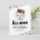 Big One First Birthday Photo moderne design noir et blanc. L'invitation la plus cool pour une journée spéciale. Ajoutez une belle couronne d'or 3D sur la tête de votre enfant pour une invitation unique et originale. Complet avec des graphiques et des polices modernes. Changez de photo en utilisant notre modèle facile d'utilisation (pro-conseil : recadrez votre carré photo comme près de ce que vous voulez montré). Motif correspondant sur le dos. Cliquez sur "Modifier en utilisant les outils de conception" pour déplacer la couronne pour travailler avec votre image ou pour le même aspect que ma maquette — utilisez l'outil "Supprimer l'arrière - plan" sur la photo. N'hésitez pas à me contacter pour toute question et faire une grande fête ! ©Marisu Valencia