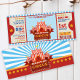 Invitation tout le monde à la grande tente pour une fête d'anniversaire spectaculaire au cirque avec nos modèles d'invitation de billets de cirque bleu vintage. Les invitations pour les billets de cirque comprennent une tente de cirque rouge avec un panneau lumineux sur un style vintage brun pâle admettent un design de billets. Le thème de couleur est entièrement modifiable ! cliquez sur personnaliser pour modifier la couleur arrière - plan. Design inverse à une tente de cirque personnalisez avec le nom de votre petit sur une couleur arrière - plan modifiable. Allez, venez, venez tous, montez à la plus grande fête de cirque sur terre !