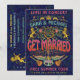 Transformez votre mariage en un long voyage étrange avec ces invitations de fête originales qui présentent votre propre groupe. Réalisées pour ressembler à un logo de rock / affiche de concert des années 70, ces invitations uniques comprennent un arbre, des roses, des lions royaux, une couronne, des poissons, des ailes, des guitares et une ancre. Le dos est conçu pour ressembler à un billet de concert. Tout le texte peut être facilement modifié via les modèles, à l'exception de "Se marier" au recto. Contactez HaHaHolidays pour obtenir de l'aide ou des modifications personnalisées plus détaillées.