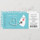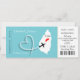 Une faire-part de mariage amusante mais élégante dans un style carte d'embarquement/billet pour les couples se mariant à l'étranger Sainte-Lucie qui est montré dans une silhouette carte blanche sur le bleu turquoise avec coeur d'amour rouge sucré, silhouette d'avion et forme de coeur tourbillonnant. Le revers est facile à customiser avec vos détails personnels et a un joli motif en dentelle fleurie blanche.