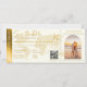 Billet d'embarquement mariage invitation avec une élégante carte du monde de destination or, boussole, avion, un modèle d'invitation de mariage personnalisé, et une section rsvp.