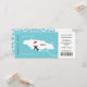Une faire-part de mariage amusante mais élégante dans un style carte d'embarquement/billet pour les couples qui se marient à l'étranger en Jamaïque qui est montré dans une silhouette carte blanche sur le bleu turquoise avec des coeurs d'amour rouge sucré, silhouette d'avion et perles blanches tourbillonnant en forme de coeur. Le verso de la carte d'embarquement comporte un motif en dentelle assez élégant.