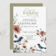 Birthday Celebration Invitation | A unique bird watching birthday party invitation .. for bird lovers … or change the text for any group .. a whimsical little bird sitting on flowers motif - A combination of script calligraphy combined with a minimalist, contemporary style text layout makes it a trending style . The "birthday" calligraphy along with all other text is customizable for color -