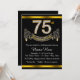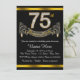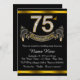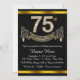 Élégant numéro de diamant et bannière noir et or 75ème anniversaire invitation fête. Cette belle invitation de fête de 75ème anniversaire en noir et or est facilement customisée pour votre événement. Ce design frappant fonctionne bien pour un homme ou une femme.
