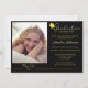 Celebrate your grad with this black and gold toned photo graduation invitation with balloons and graduation cap on the back.