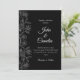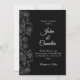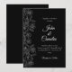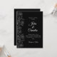 This wedding invitation features a black background with white floral line art on the side, creating a clean and classic look. The simple black and white style makes it perfect for modern, formal, or minimal weddings.
