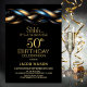 Invitation Black Blue Gold Surprise 50e fête d'anniversaire