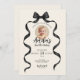 Invitation de style avec cette Black Bow Invitation d'anniversaire avec photo! 🖤 🎀 Conçu avec un arrière - plan beige chic et un ruban d'inspiration coquette, cet élégant modèle travaille à merveille pour tous les âges, du 1er anniversaire aux célébrations marquantes. Ajoutez votre photo préférée et customisez les détails pour créer un invitation intemporel et à la mode, parfait pour les filles qui aiment une ambiance classe et féminine.